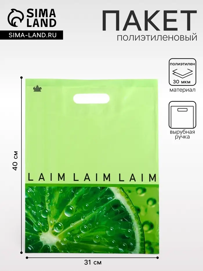 Пакет «Лаймовая свежесть», полиэтиленовый с вырубной ручкой, 40×31 см, 30 мкм
