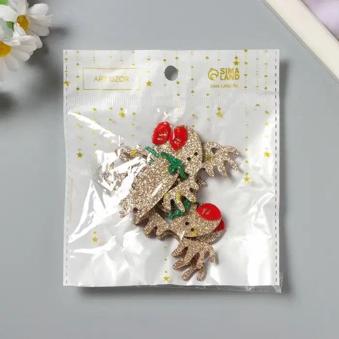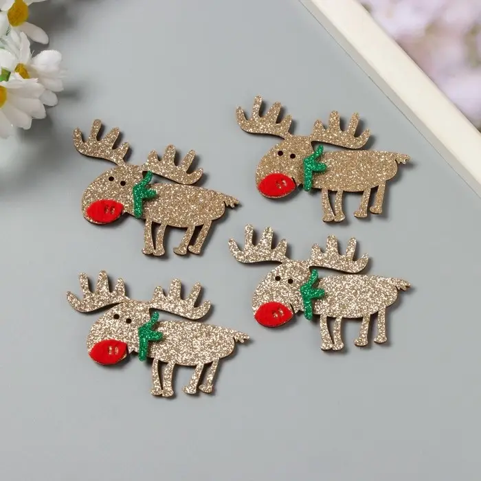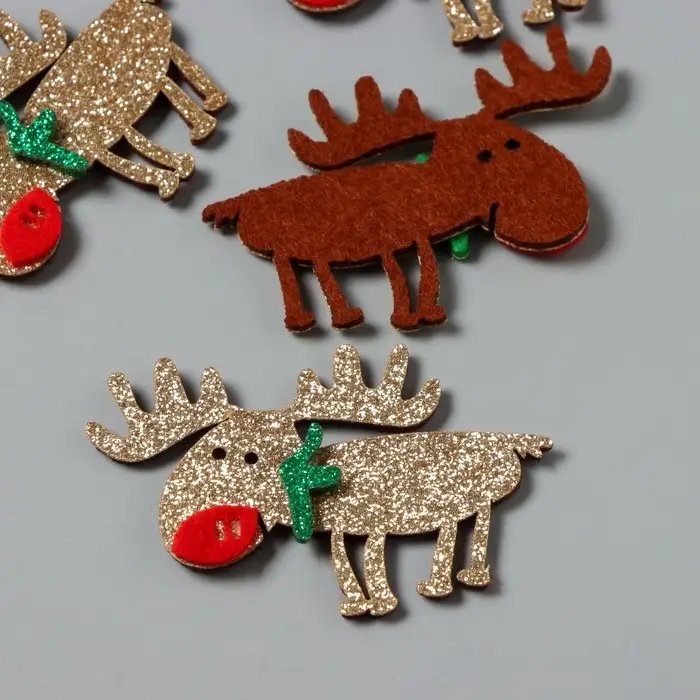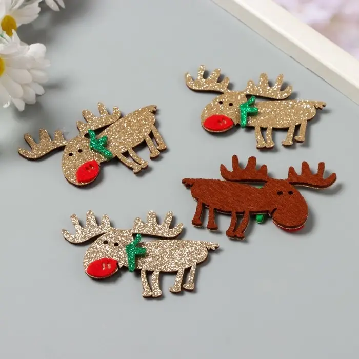 Декор для творчества войлок блеск "Олень" серебро 5,5х7 см