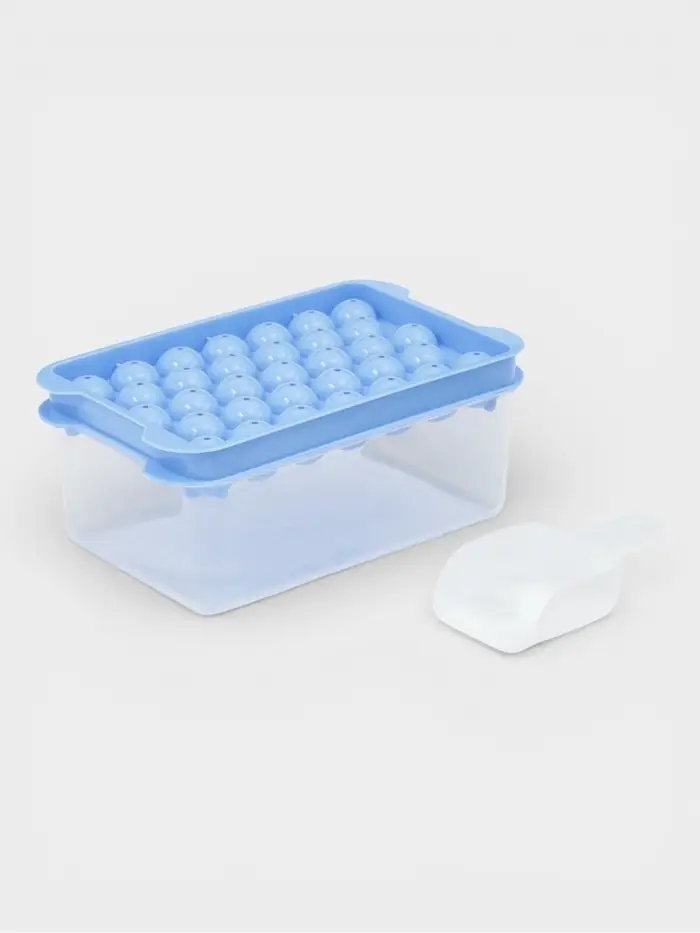 Форма для льда 2 шт.,с контейнером и совком,19.1×11.6×8.5 см, ячейка 2.1 см, голубая