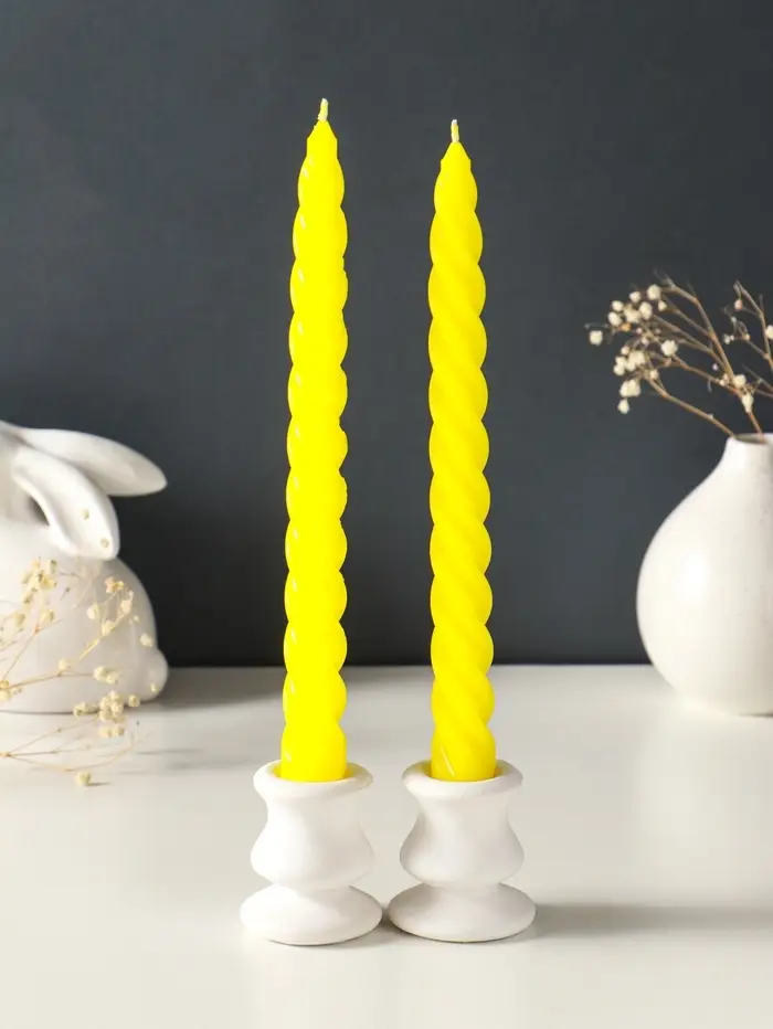 Набор свечей витых, 2,3х 24,5 см, 5 ч, 50 г, 2 штуки, жёлтый