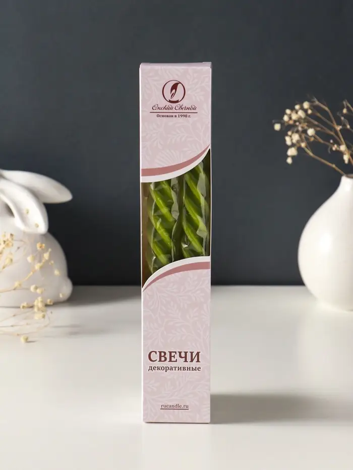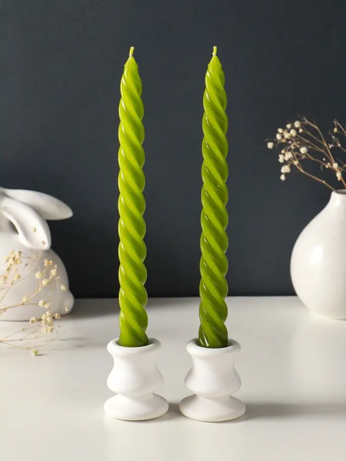 Набор свечей витых, 2,3х 24,5 см, 5 ч, 50 г, 2 штуки, оливковый