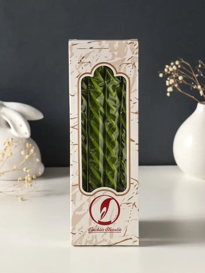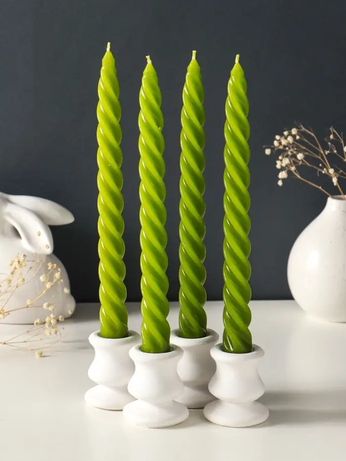 Набор свечей витых, 2,3х 24,5 см, 5 ч, 50 г, 4 штуки, оливковый