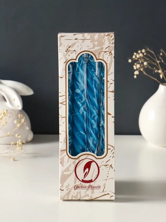 Набор свечей витых, 2,3х 24,5 см, 5 ч, 50 г, 4 штуки, синий