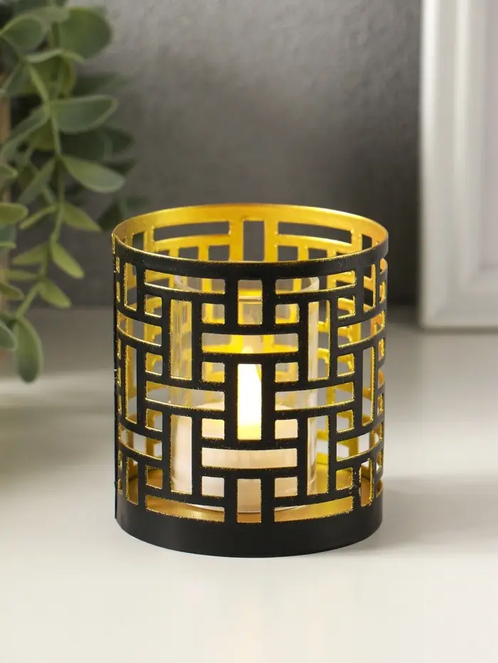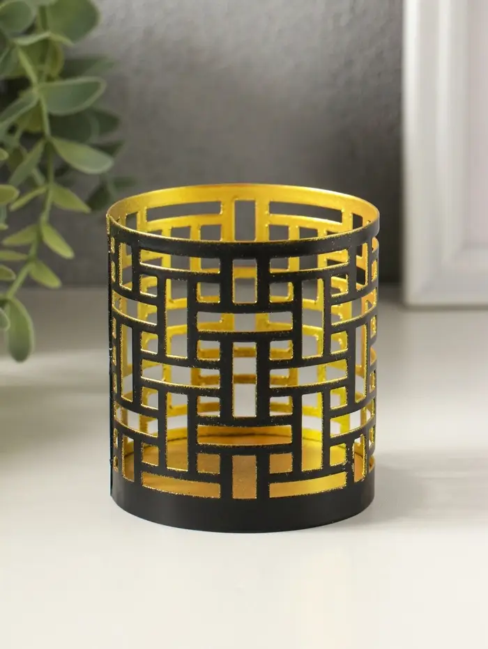 Подсвечник "Цилиндр №1" металл 7,5х7,5х8 см, черный с золотом