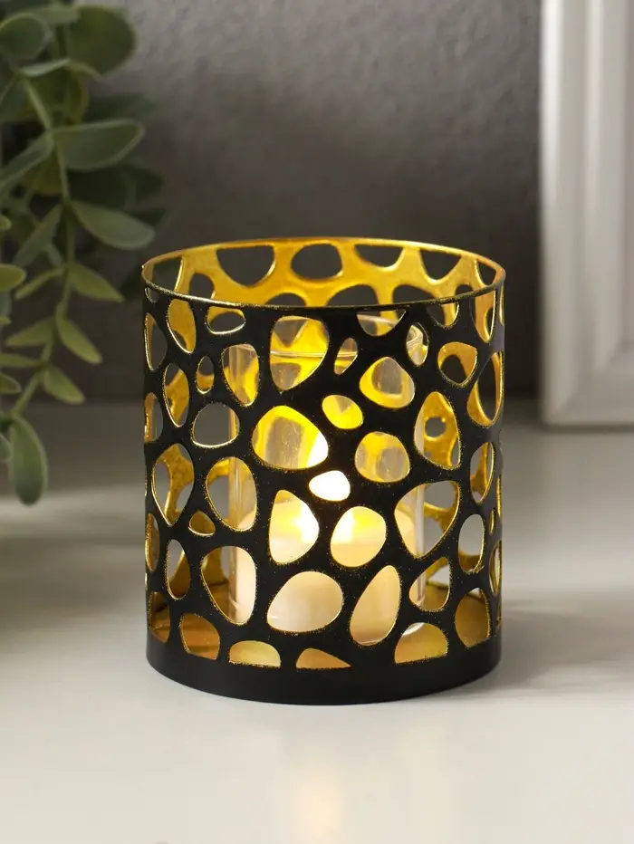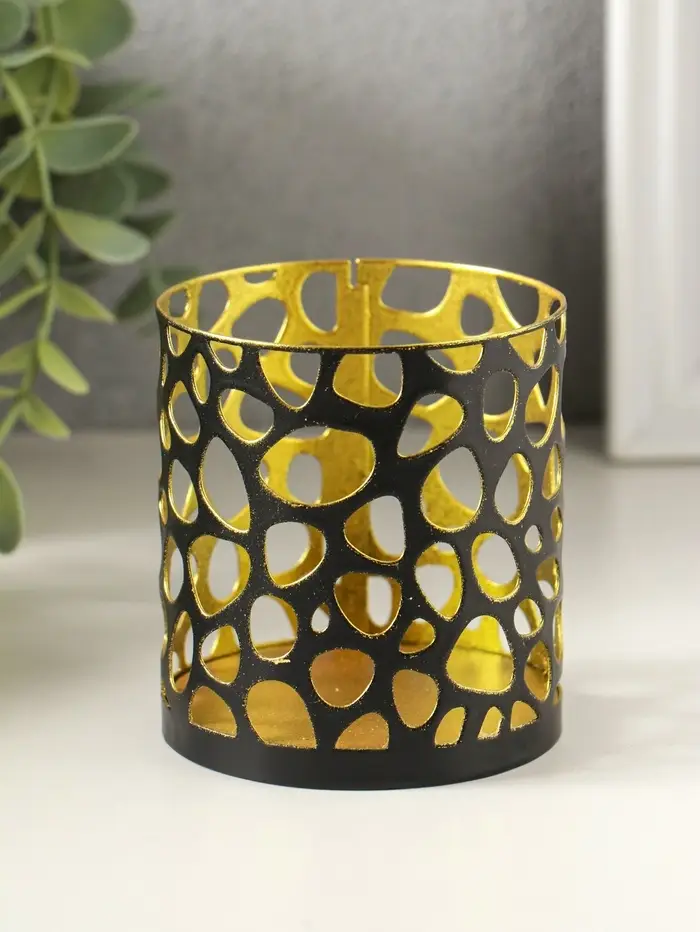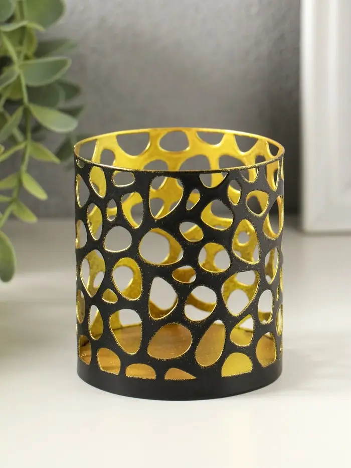 Подсвечник "Цилиндр №2" металл 7,5х7,5х8 см, черный с золотом