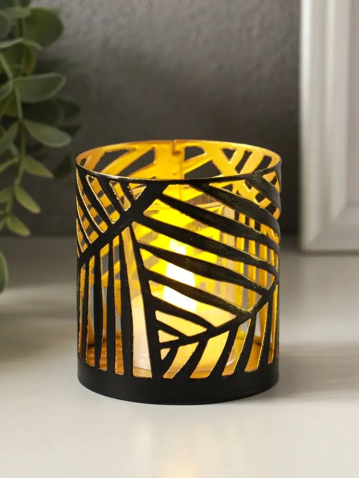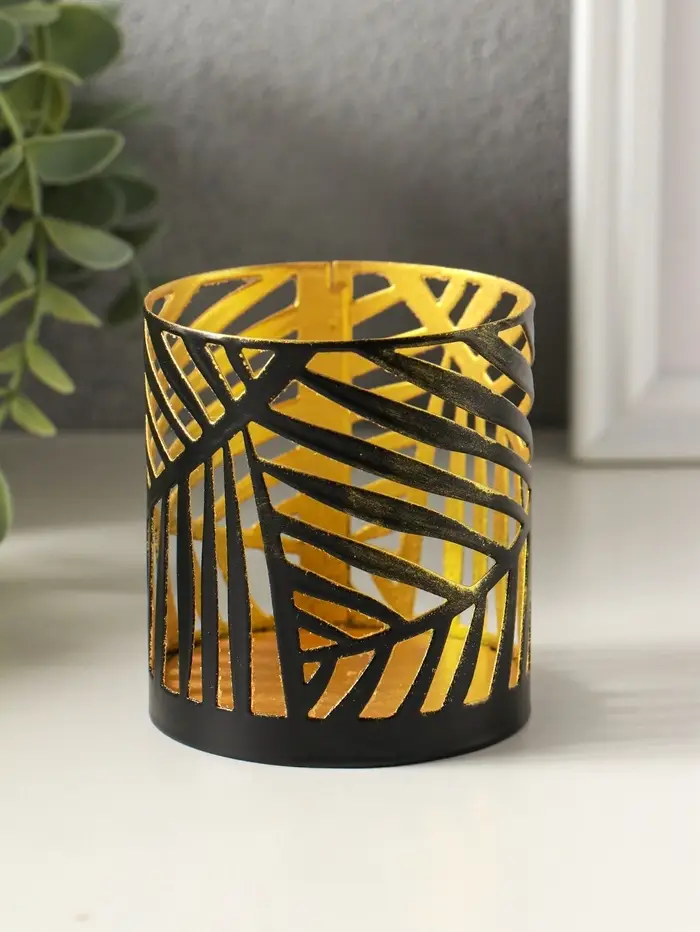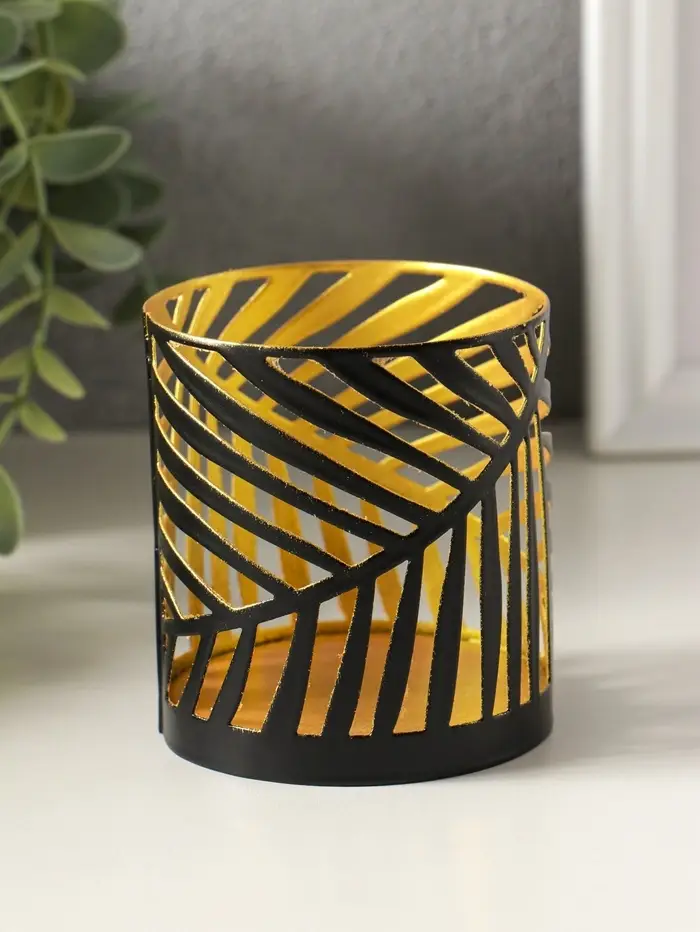Подсвечник "Цилиндр №3" металл 7,5х7,5х8 см, черный с золотом