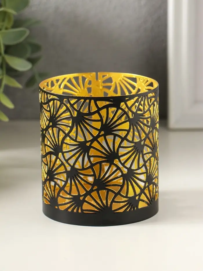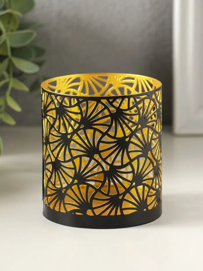 Подсвечник "Цилиндр №4" металл 7,5х7,5х8 см, черный с золотом