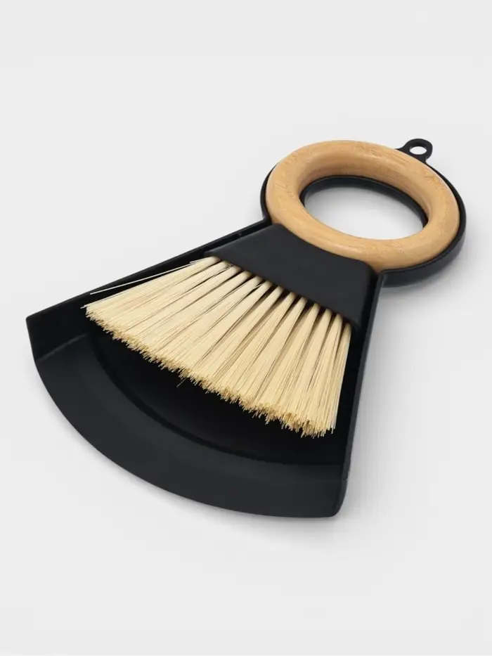 Щетка с совком "Meli", бамбуковая ручка, цвет черный 21,5х16,5 см
