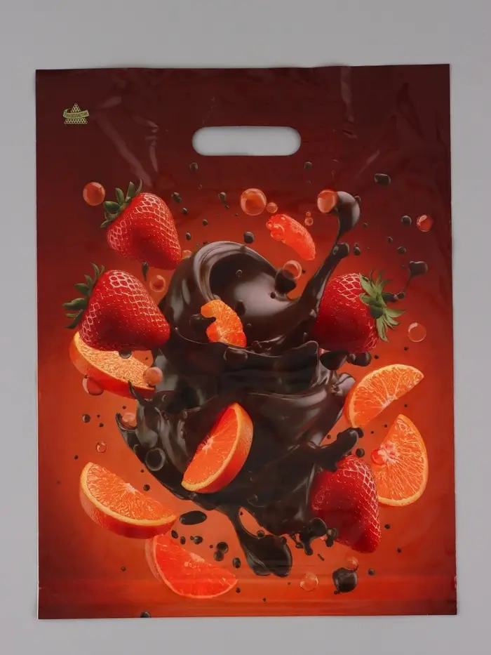 Пакет подарочный Клубника в шоколаде 40 х 31 см 60 мкм