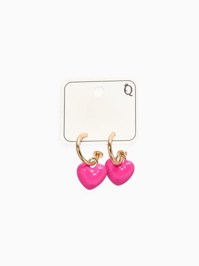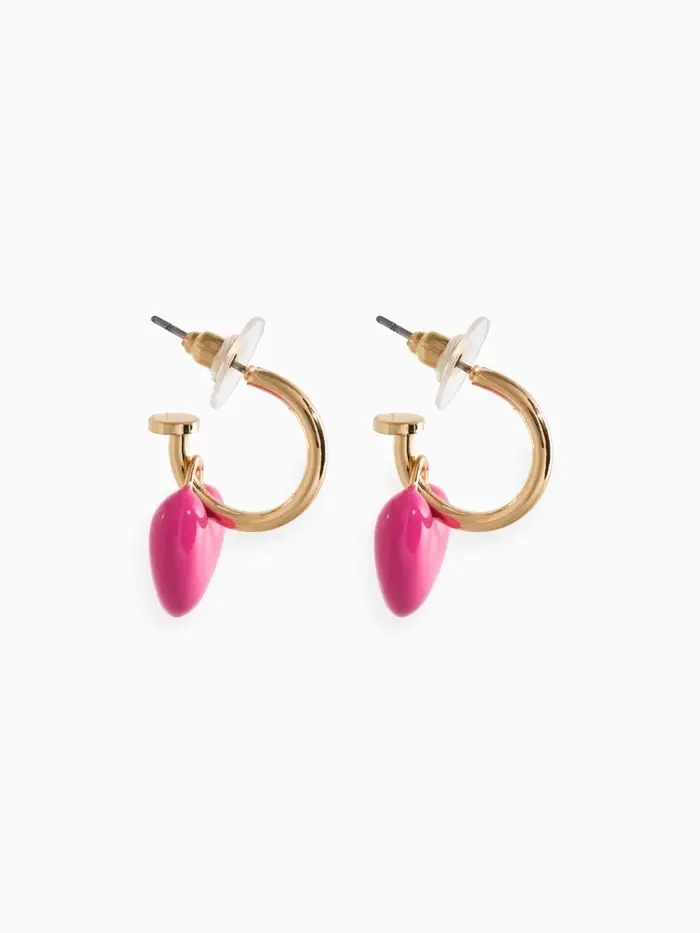 Серьги со съмными элементами "Сердца" пухлые, цвет ярко-розовый в золоте