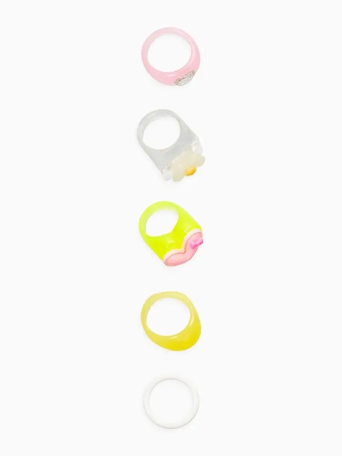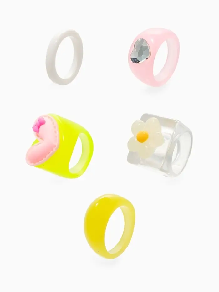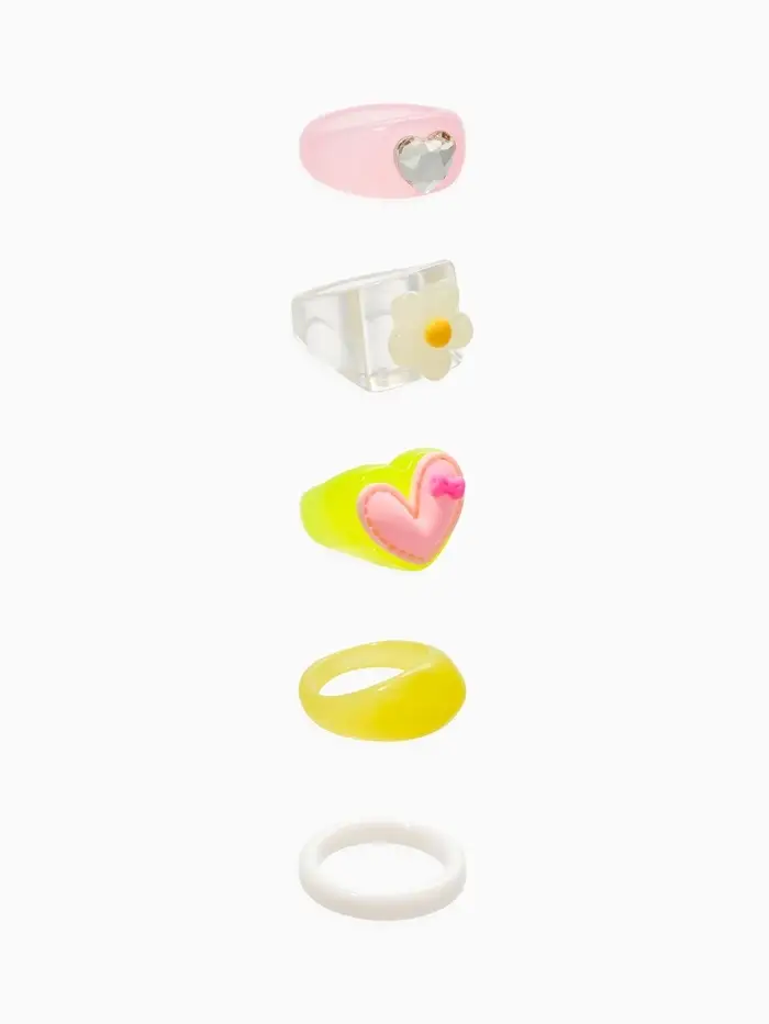 Набор колец 5 шт "Стиль лёгкий" цветы и сердечки, размер МИКС (17-19), цветные