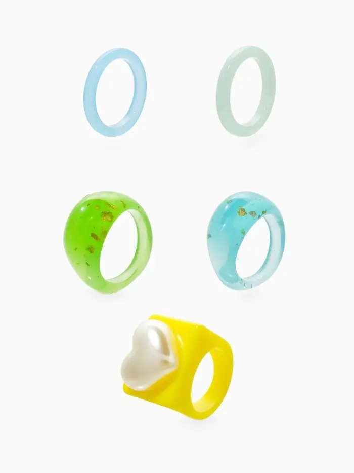 Набор колец 5 шт "Стиль лёгкий" сердце, размер МИКС (17-19), цветные