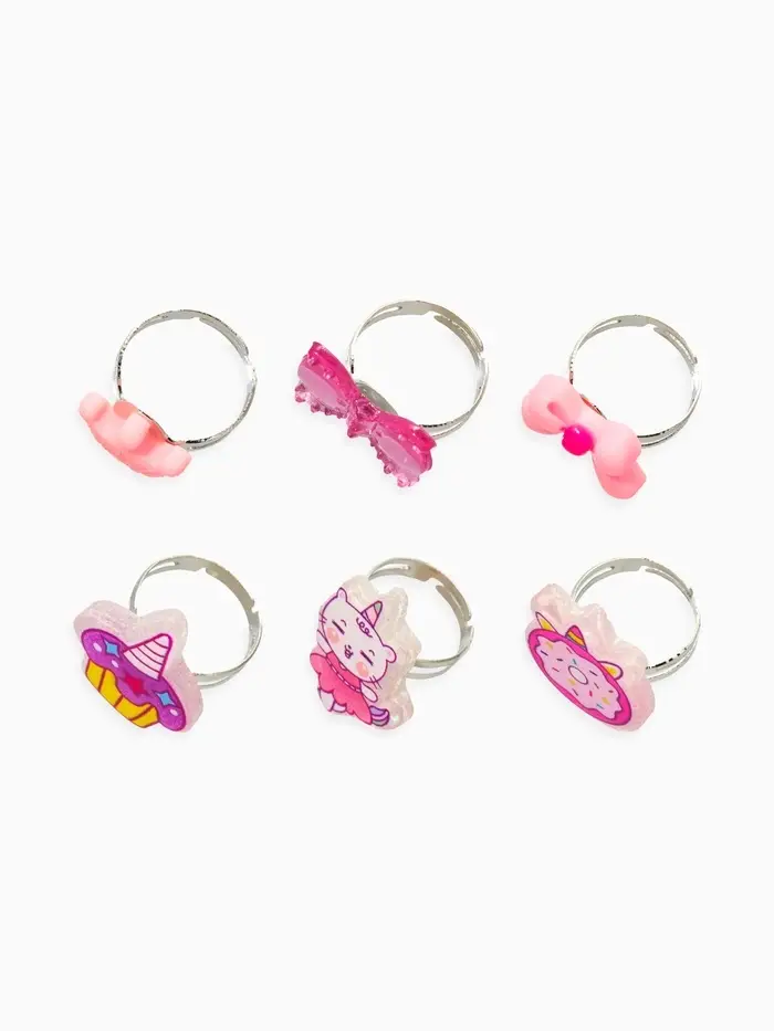 Кольца детские набор 6 шт. «Выбражулька» котик, единорог, форма МИКС, б-р, цвет фиолт-роз