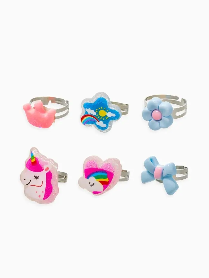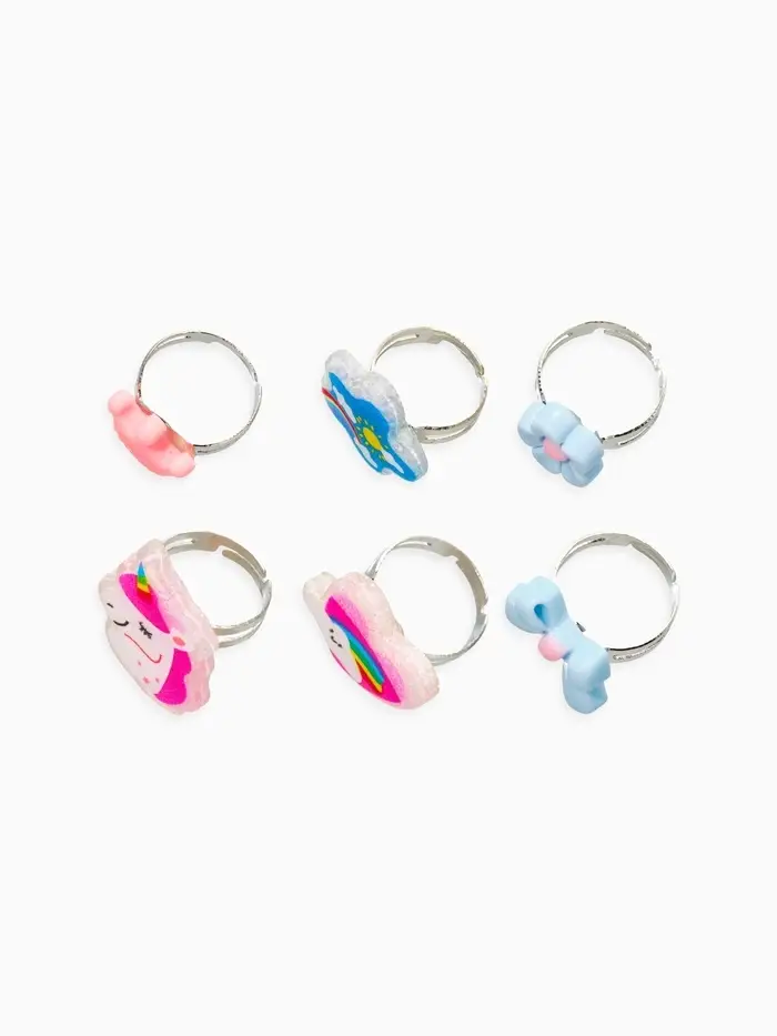Кольца детские набор 6 шт. «Выбражулька» облоко, единорог, форма МИКС, б-р, разноцветный