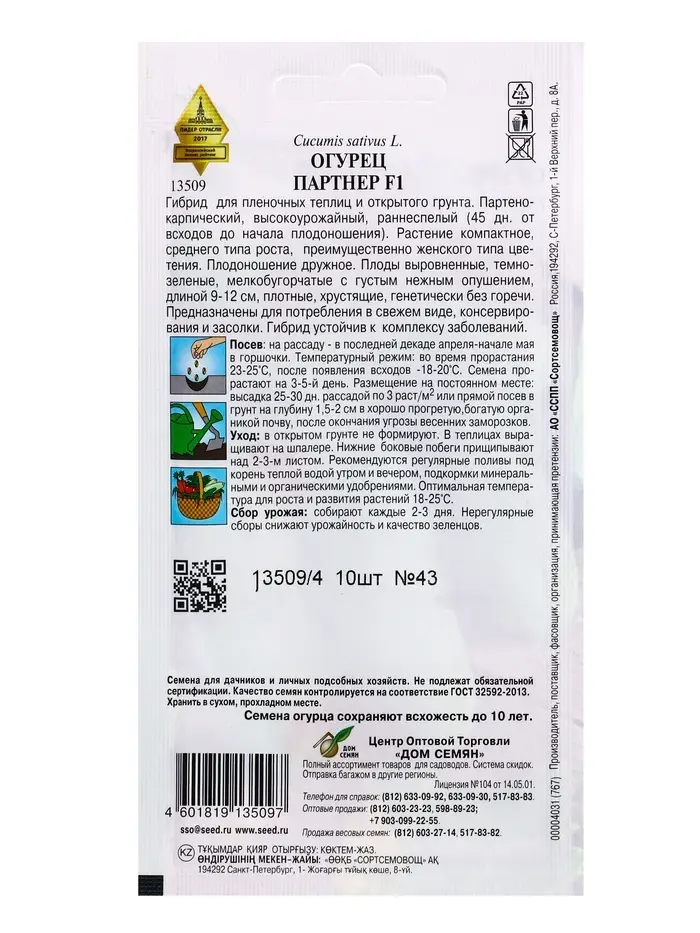 Семена Огурец Партнер F1 10 шт