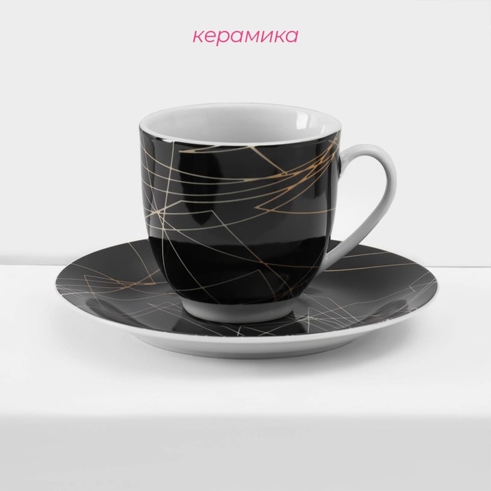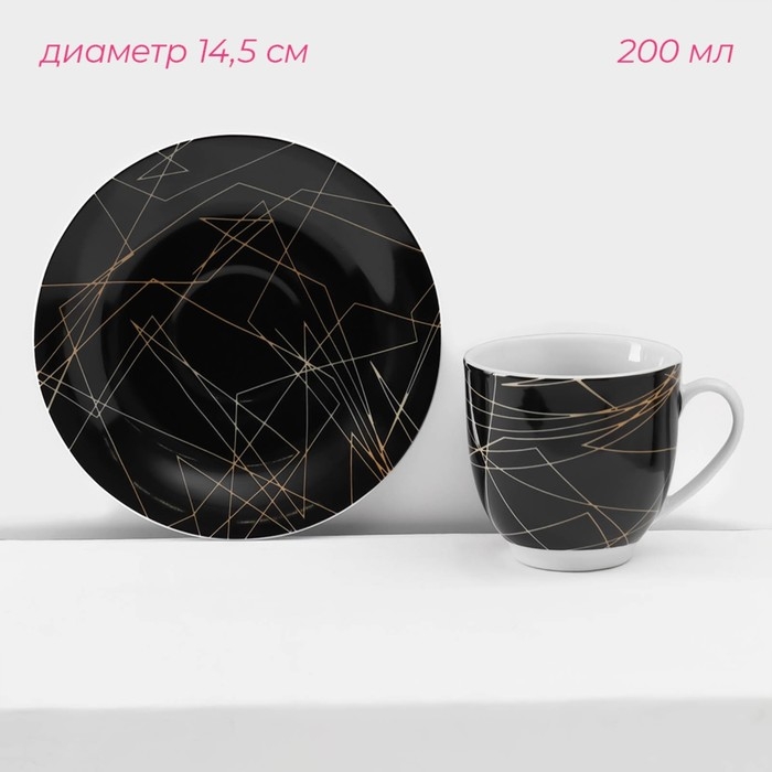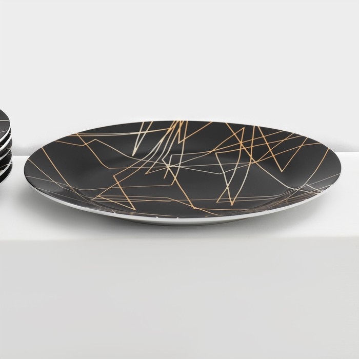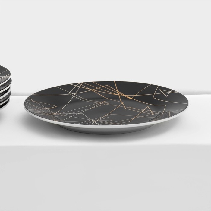 Набор керамической посуды Доляна «Кассиопея», 24 предмета: тарелки d=19/21/24 см, чайная пара 200 мл, цвет чёрный
