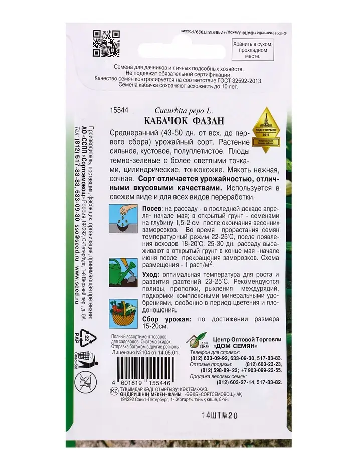 Семена Кабачок Фазан 14 шт