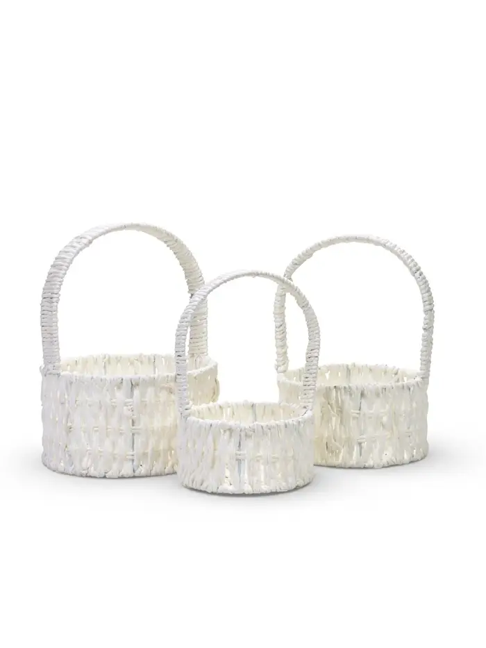 Набор корзин 3 шт пластик 20х20х11 17х17х9 14х14х7 см ручка h=10см белый круг