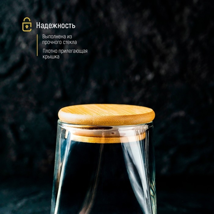 Банка стеклянная для сыпучих продуктов с бамбуковой крышкой Magistro «Эко. Трапеция», 550 мл, 8,5×12,5 см