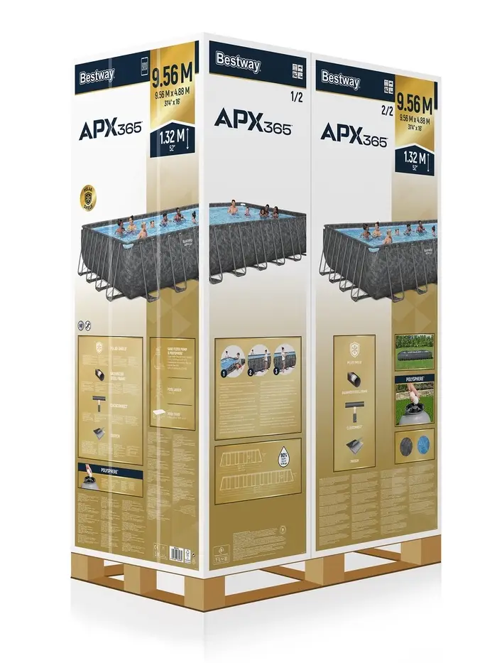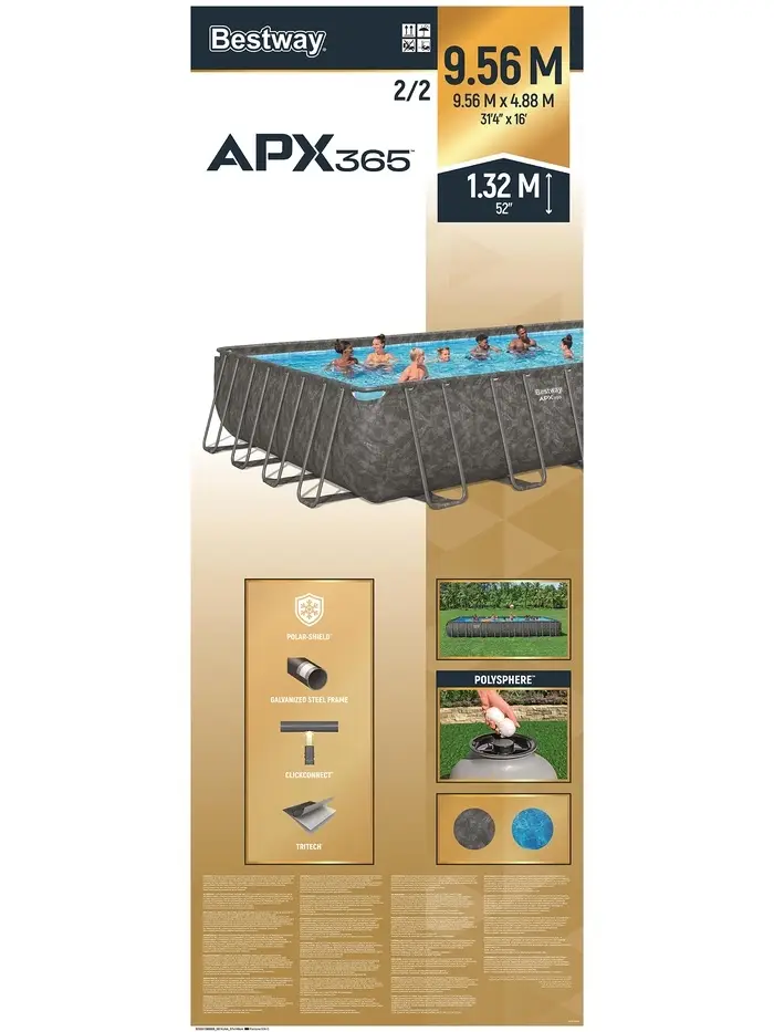 Бассейн каркасный Power Steel 956 х 488 х 132 см (фильтр-насос,лестница,тент) 561KJ