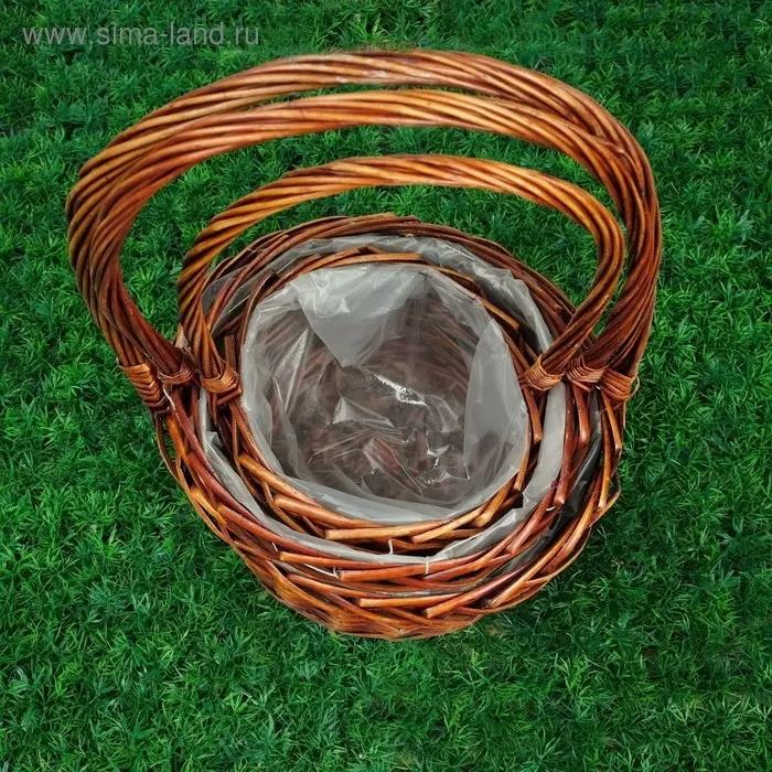 Набор корзин «Плетёнка», темно-коричневый, 3 шт, 28×14/45, 24×13/41, 19×11/37 см, ива