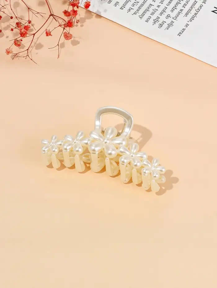 Краб для волос "Эмилин" цветы, 9,5 см, белый
