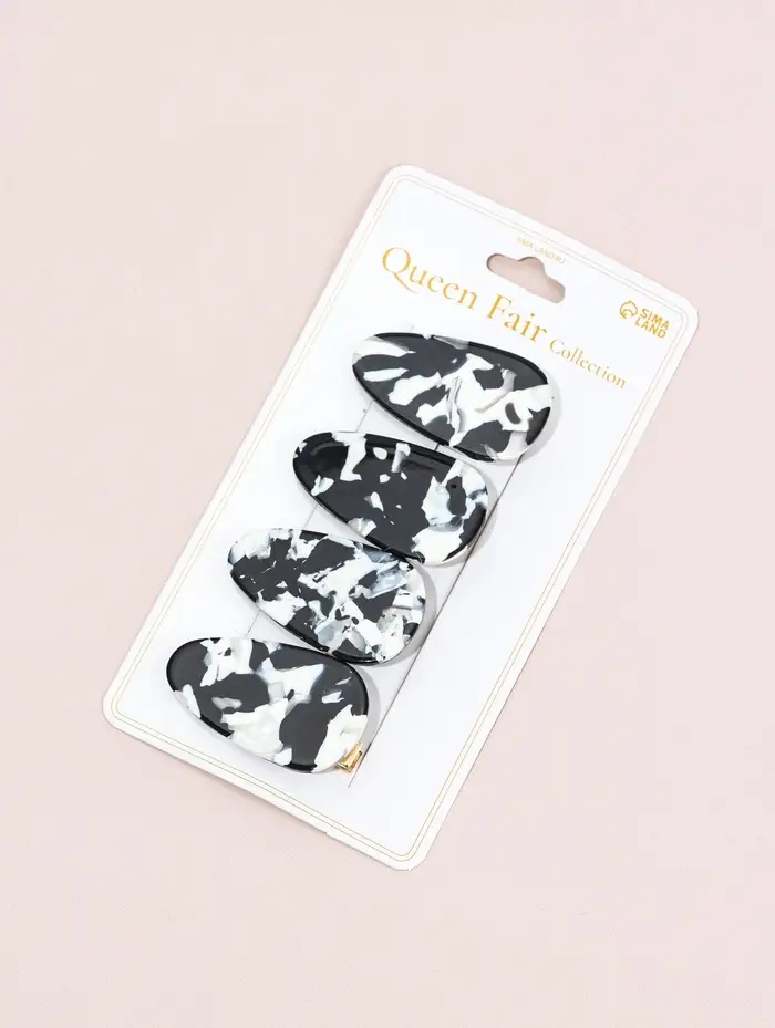 Зажим для волос "Маргарита" (набор 4 шт) 4 см, чёрно-белый