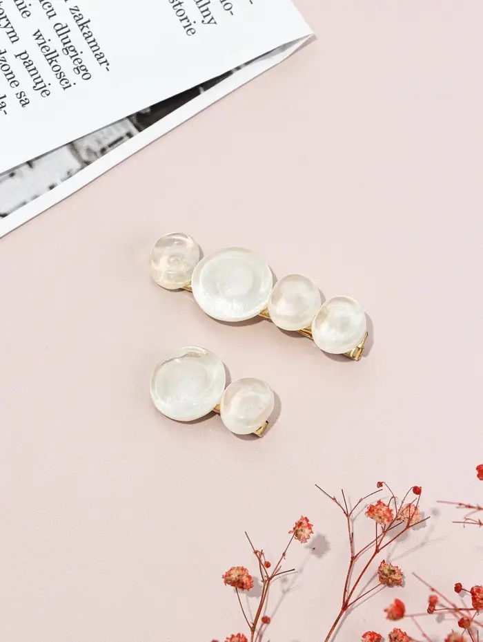 Зажим для волос "Адель" (набор 2 шт) 6,5 и 4 см, белый