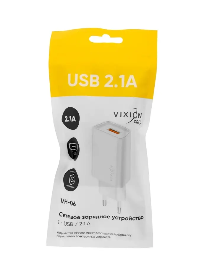 Сетевое зарядное устройство VIXION PRO VH-06, USB, 2.1 А, белый