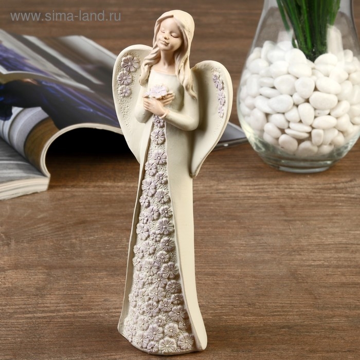 Сувенир полистоун "Ангел-девушка в платье с цветами" 19,7х7,2х4,5 см