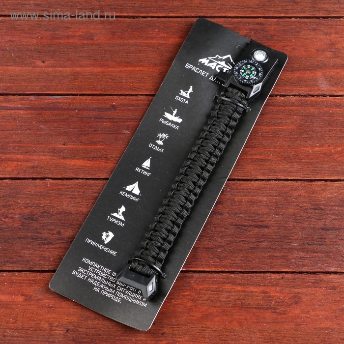 Браслет для выживания "Мастер К.", с компасом и фонариком, паракорд 3 м, 24 х 2 см