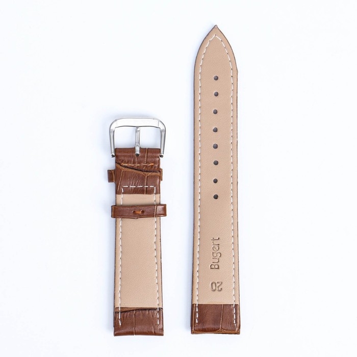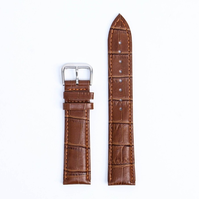 Ремешок для часов "Соломон" 20 мм, натуральная кожа, l=20 см, коричневый, фактура крокодил