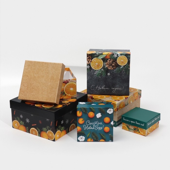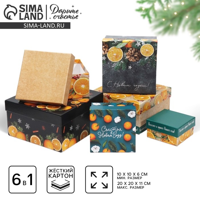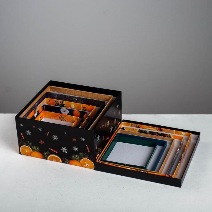 Набор подарочных коробок 6 в 1 «Мандариновый», 10 х 10 х 6 - 20 х 20 х 11 см , Новый год