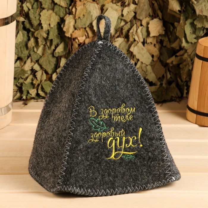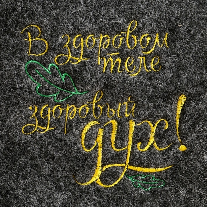 - банная шапка с вышивкой «В здоровом теле здоровый дух»;