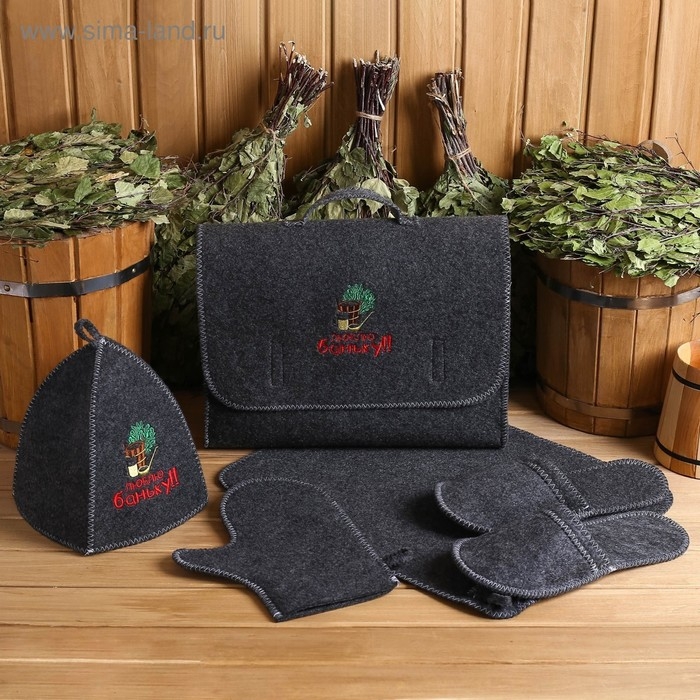 Набор банный портфель 5 предметов "Люблю баньку", серый