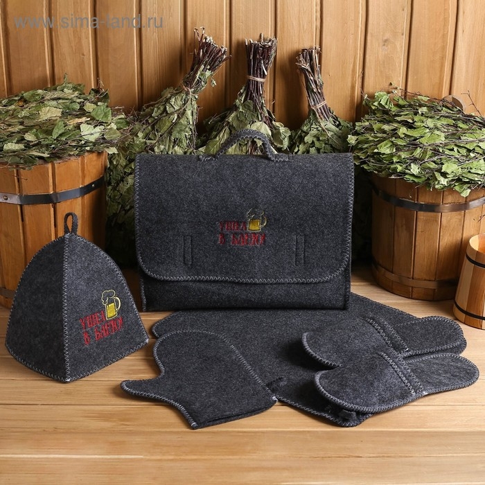 Набор банный портфель 5 предметов "С Лёгким паром, с веником", серый