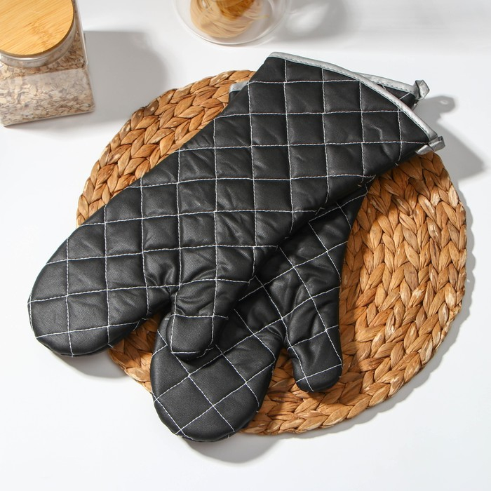 Набор прихваток «Профи», 2 шт, 41×17×2,5 см, цвет чёрный
