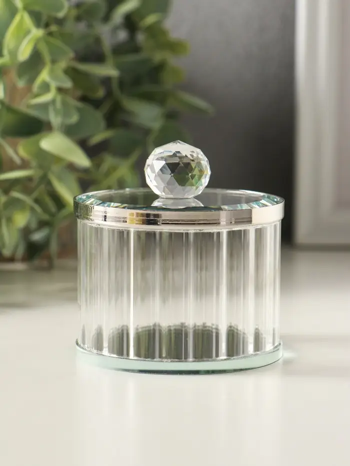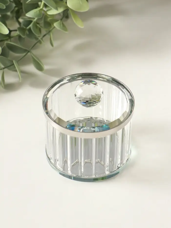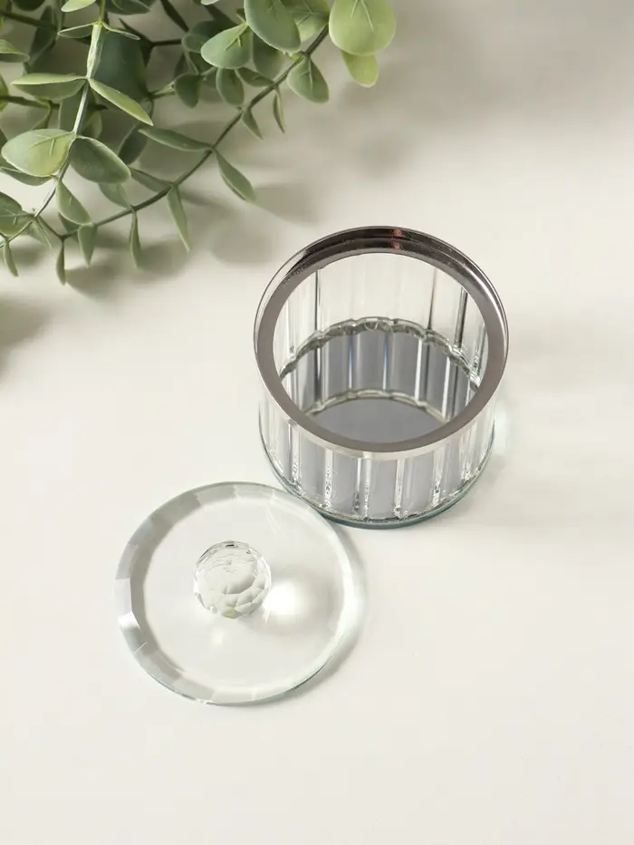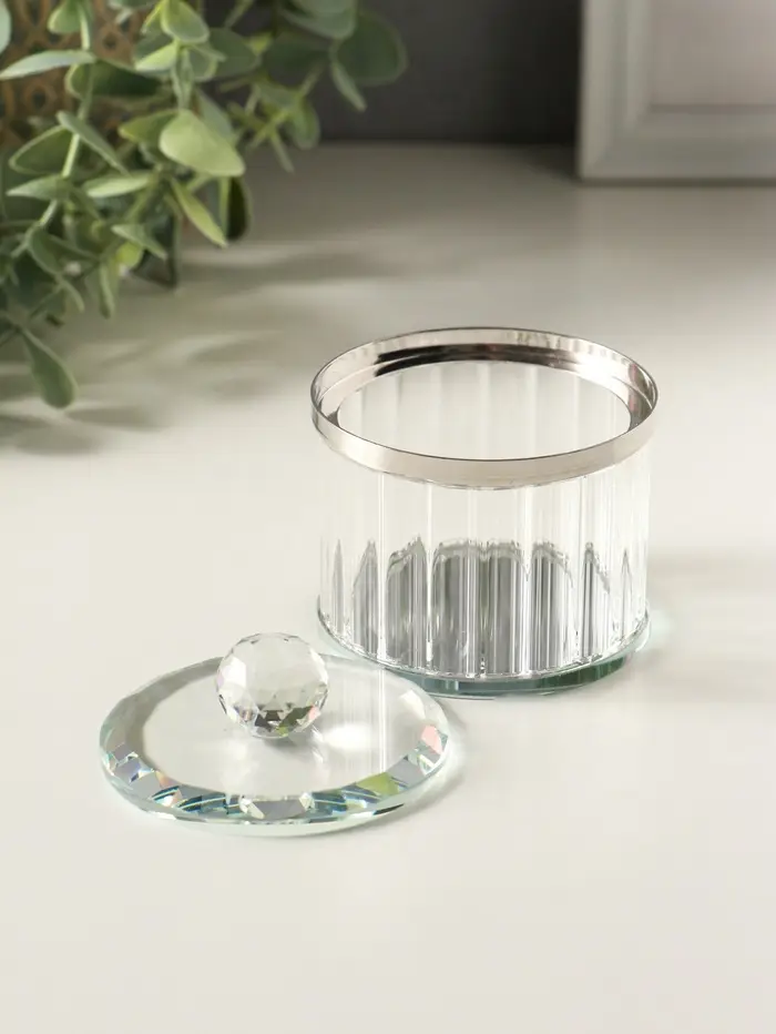 Шкатулка стекло с металлическим ободком "Шар" серебро 6,7х6,7х7 см
