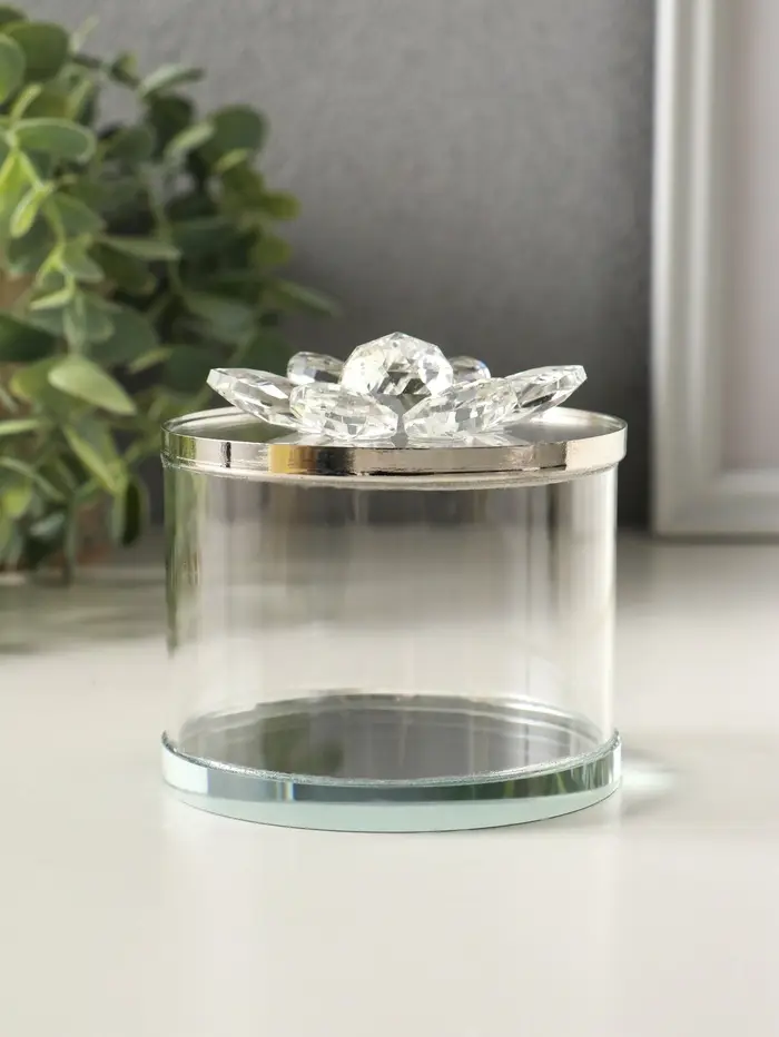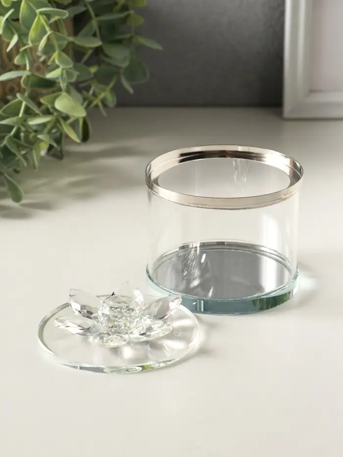 Шкатулка стекло с металлическим ободком "Лотос" серебро 8,2х8,2х8,5 см