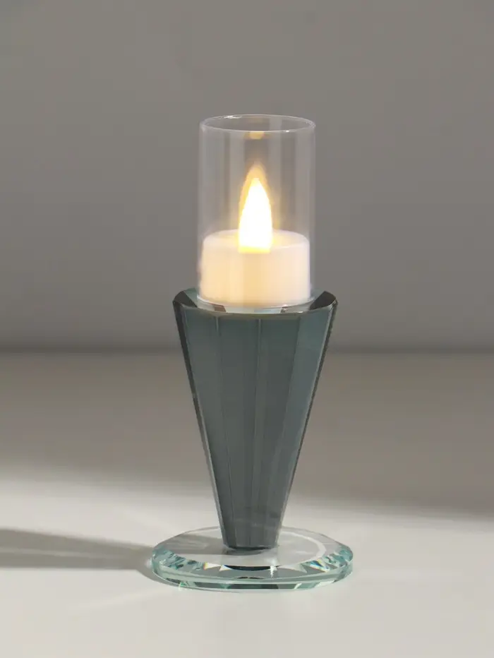 Подсвечник стекло на 1 свечу "Пирамида с гранями" прозрачный d=7 см 7х7х9,5 см