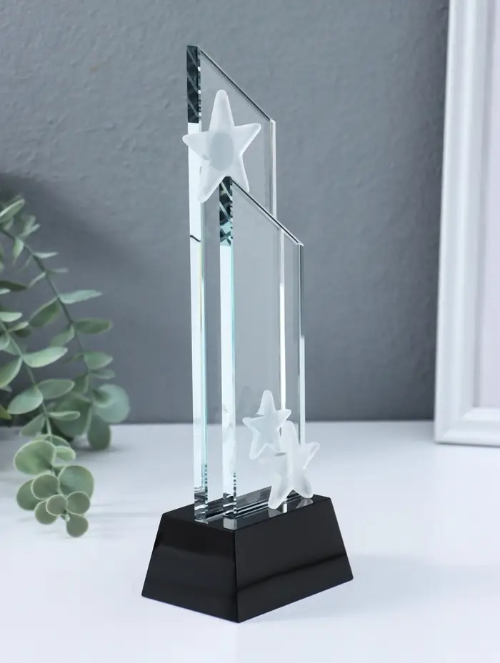Стела наградная стекло "Звездопад" подставка h=4 ширина 6 и 8 см 6х8х22,5 см