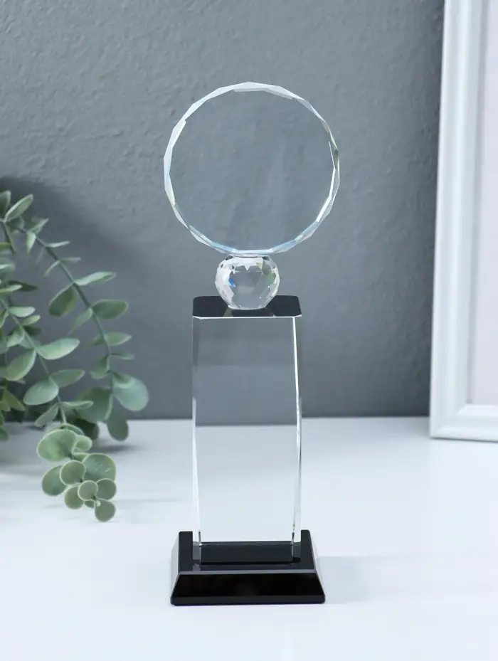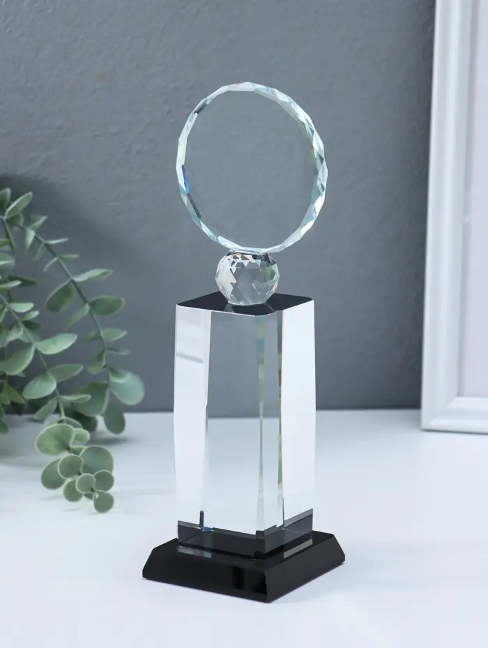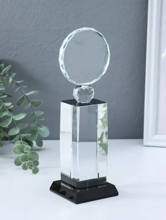 Стела наградная стекло "Медаль" медаль d=8 см площадка 5,5х11,8 см 7х8х24 см
