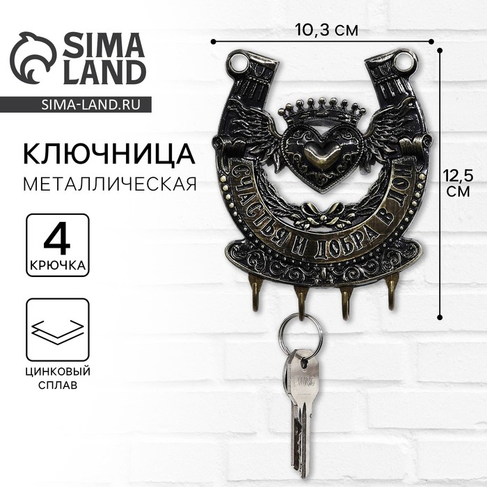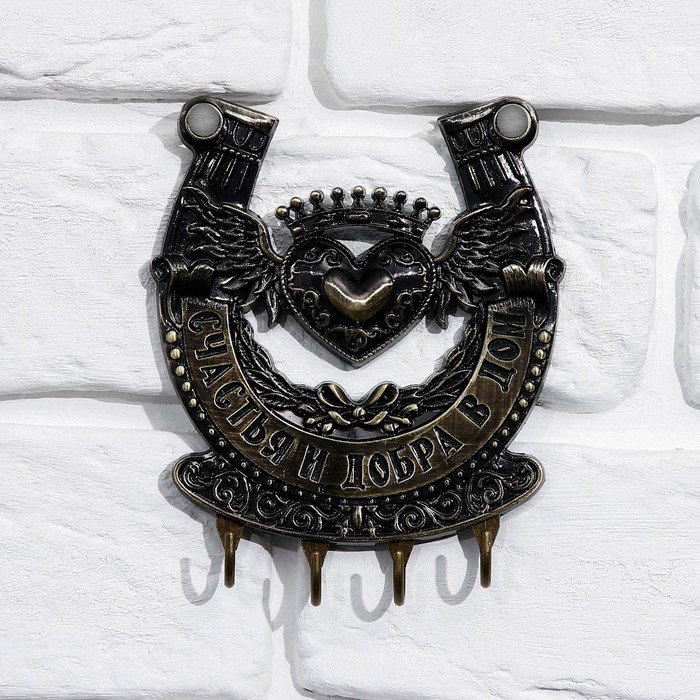 Ключница настенная-подкова «Счастья и добра», 10,3 х 12,5 см.