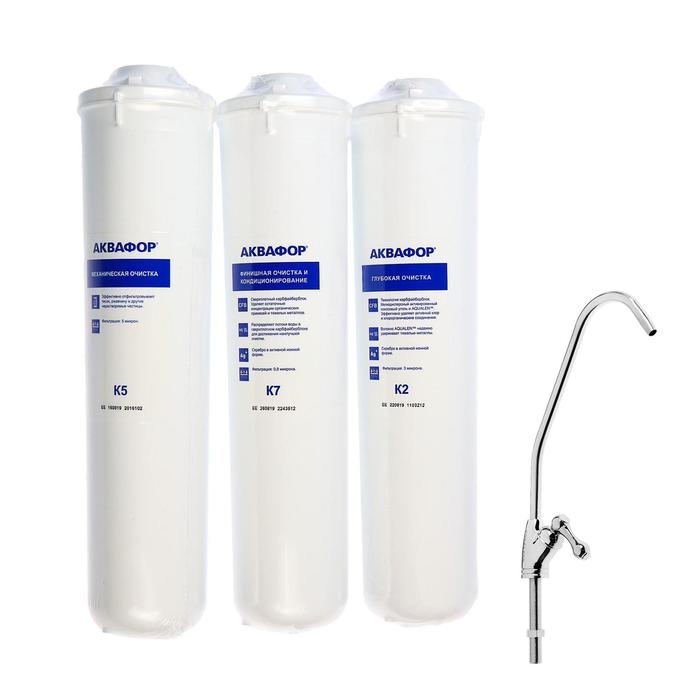 Система для фильтрации воды "Аквафор" Кристалл А, К5/К2/К7, 26x9x35 см, с краном, 2 л/мин