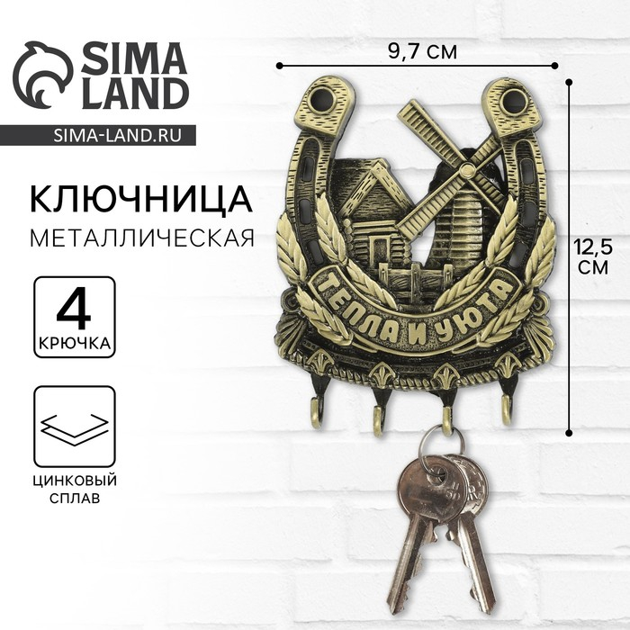 Ключница настенная-подкова «Тепла и уюта», мельница, 9,7 х 12,5 см.