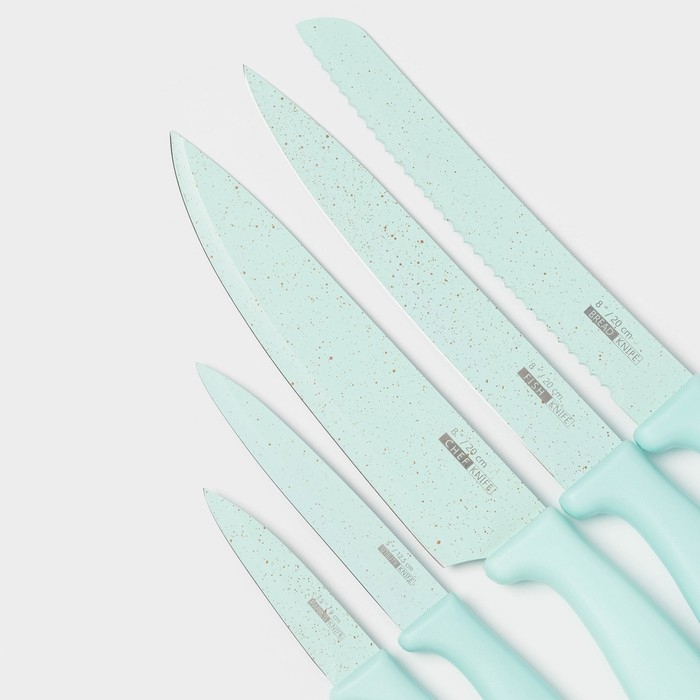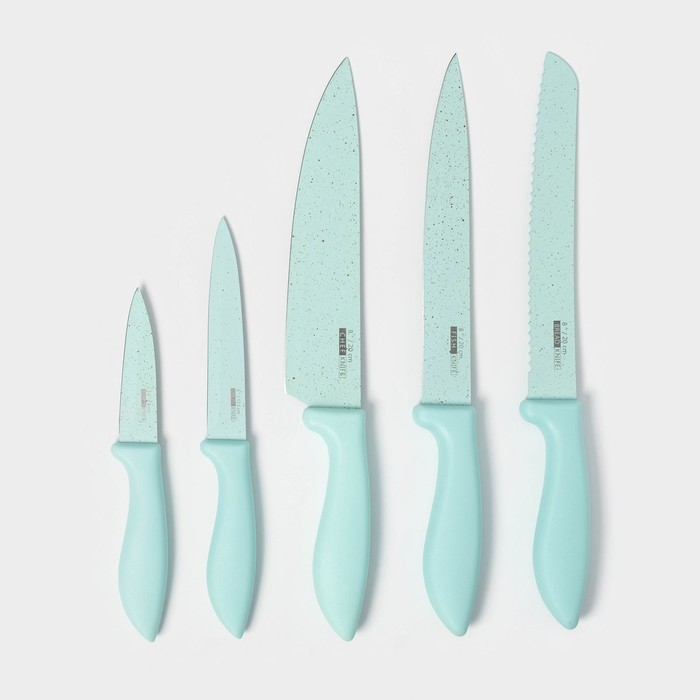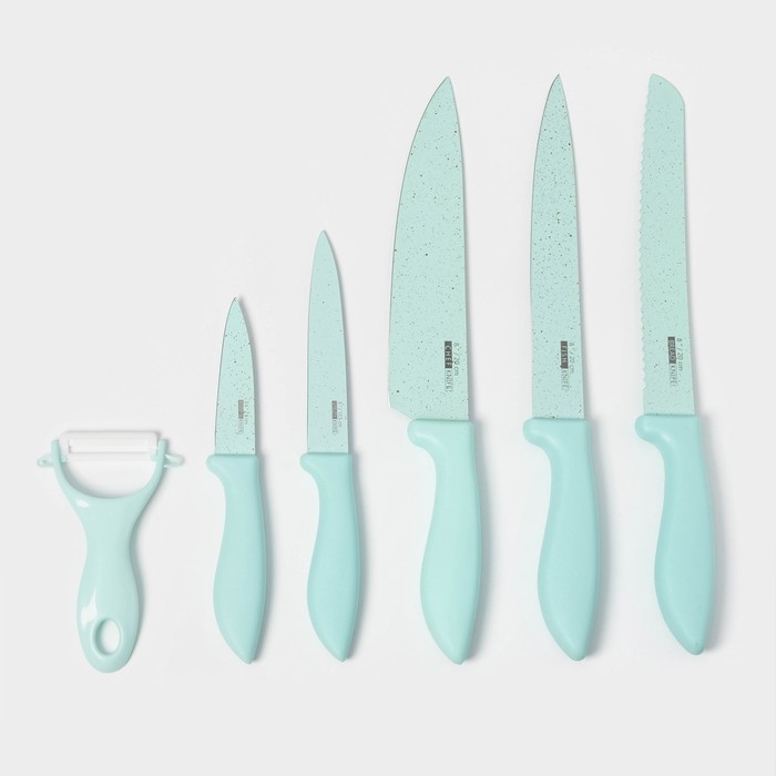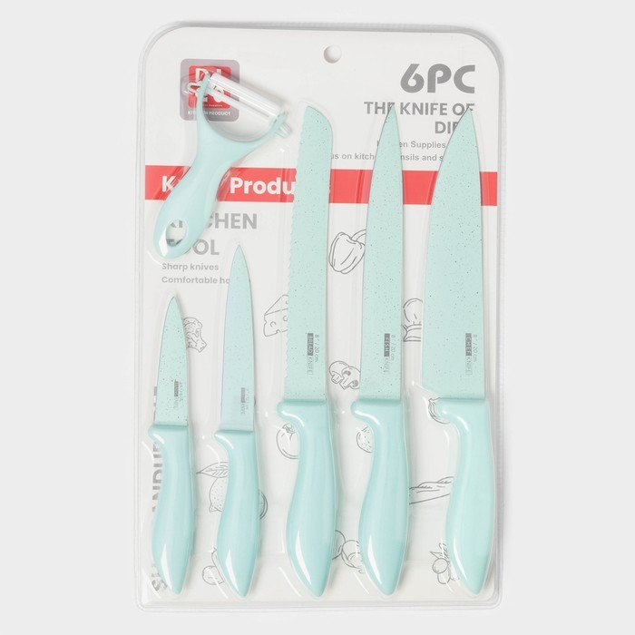 Набор кухонных принадлежностей «Клауд», 6 предметов: 5 ножей, овощечистка из керамики, цвет бирюзовый