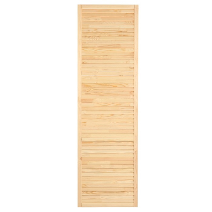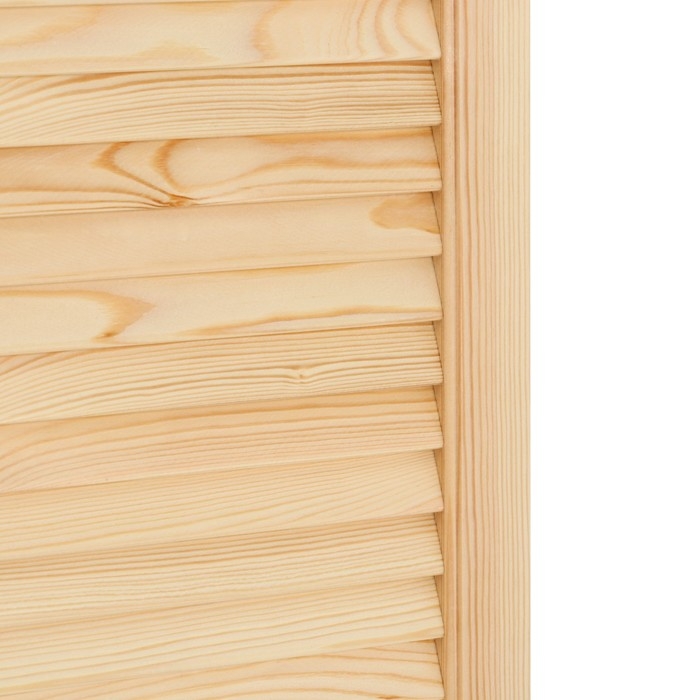 Жалюзийная дверь изготовлена из сосны. Такие двери используются в помещениях, где требуется постоянное проветривание. Также применять жалюзийный фасад можно для шкафов, тумбочек для ванной комнаты, на кухне, балконе или в кладовке. С помощью изделия легко создать уникальный дизайн мебели или обновить её внешний вид.