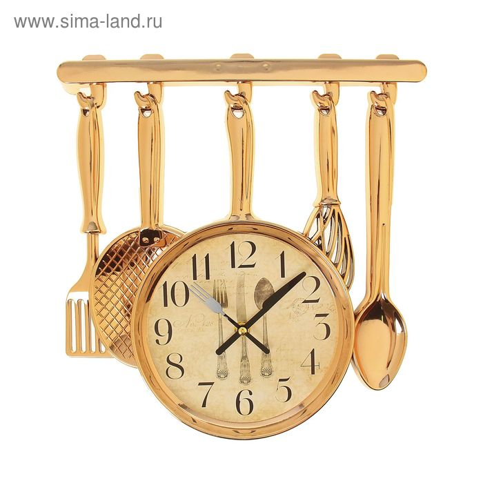 Часы настенные интерьерные, для кухни, "Столовые приборы", бесшумные, 30 х 32 см