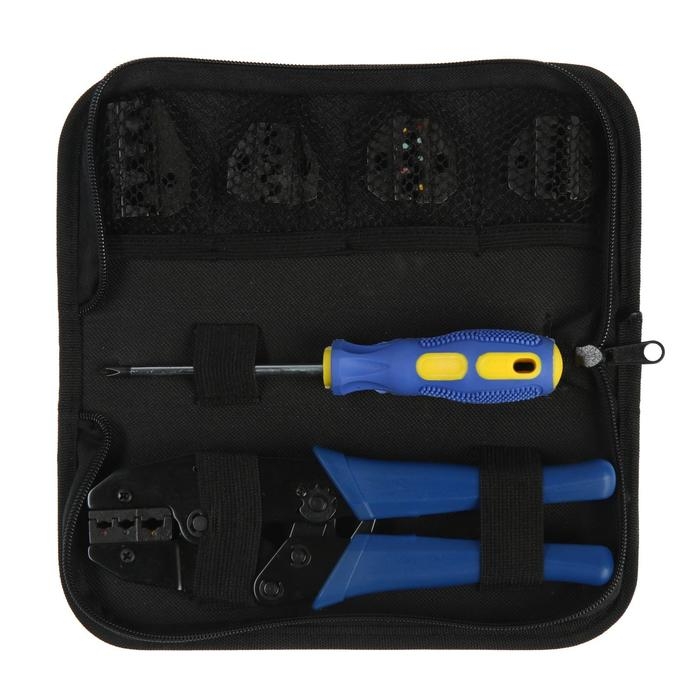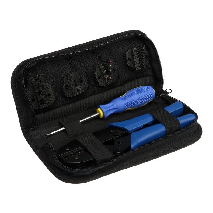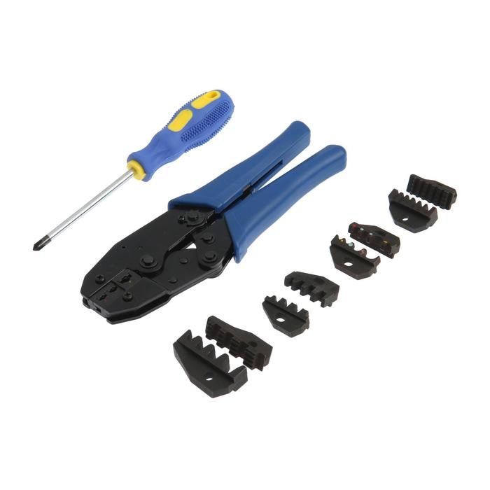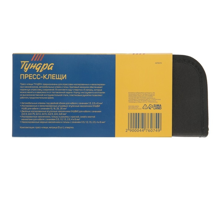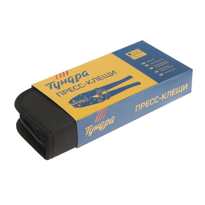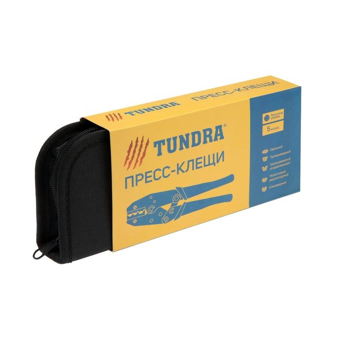 Пресс-клещи в сумке ТУНДРА, 5 матриц + отвертка, для опрессовки наконечников проводов