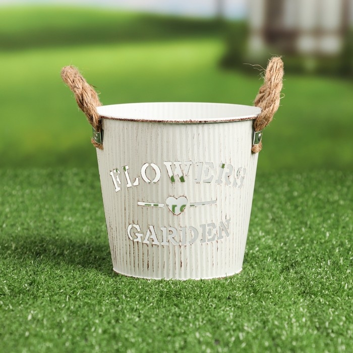 Кашпо "Ведерко цветочный сад" белое, 13х13х12см